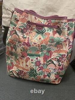 This stunning Disney Parks The Lion King Dooney & Bourke drawstring bag purse is the perfect accessory for any Disney fan. Featuring a beautiful design inspired by the beloved film, this bag is made from high-quality materials that are built to last. With a spacious interior and adjustable straps, this bag is perfect for carrying all of your essential items while you explore the parks.