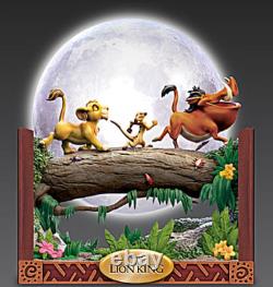 L'Édition Première se trouve à gauche et présente les conseillers du Royaume des Lions, Zazu et Rafiki de Disney. À droite, l'Édition Trois présente le coloré méchant Scar du film avec deux de ses méchants hyènes guettant à proximité. L'Édition Deux, le serre-livre central dramatique, met en avant les trois amis, Simba, Timon et Pumba de Disney, alors qu'ils vivent leur style de vie "sans soucis" à la lumière d'une pleine lune lumineuse qui les illumine derrière eux. Parfait pour soutenir vos livres, albums, CD, dossiers et plus encore tout en célébrant 30 ans de souvenirs dans votre décor Disney !